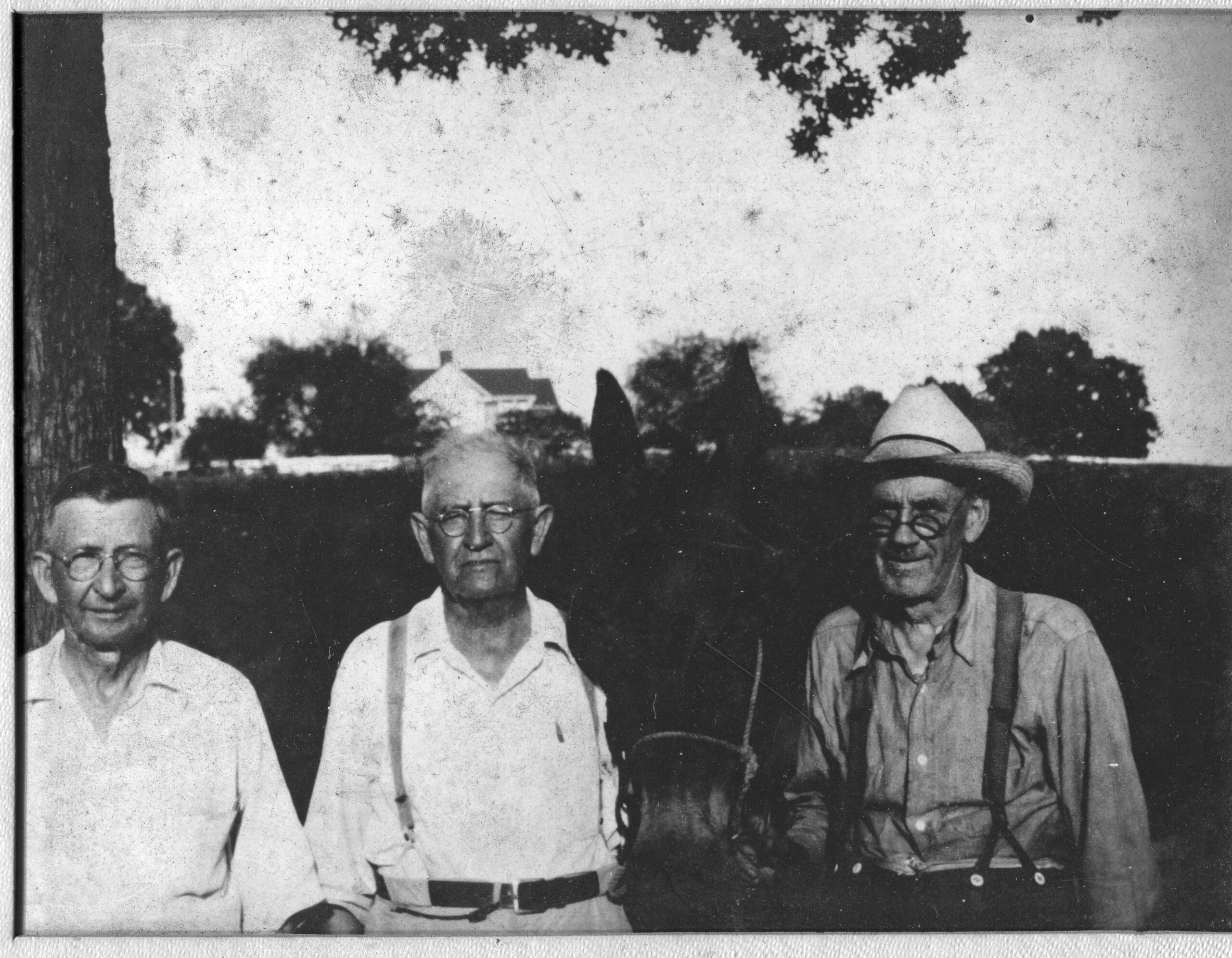 Waller Bracey (left), pictured with fellow Bracey store owners John Ridout and Ed Lambert (and a mule).
