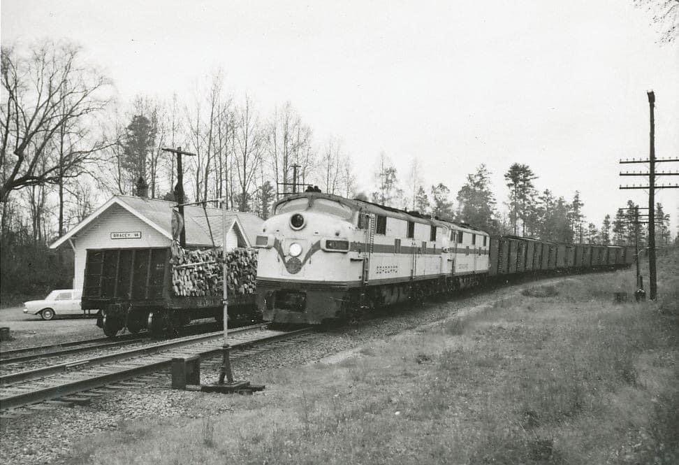 1964: In January, W. Randolph Hite threw a snowball; Seaboard Air Line No. 27 derailed in “The Cut” of downtown Bracey near the station. IYKYK.