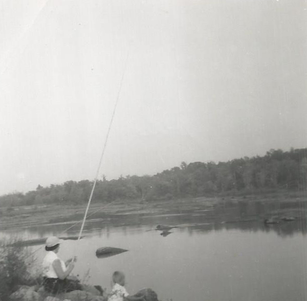Mabel “Lady” Bracey Sims Hite fishing with her son W. Randolph Hite near the Buggs Island Dam.
